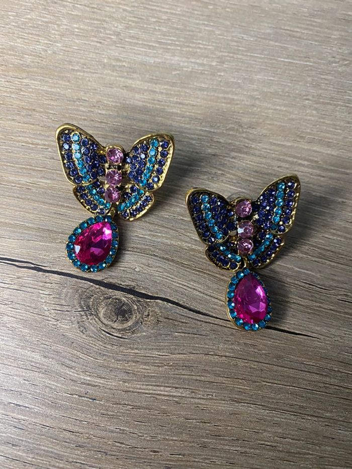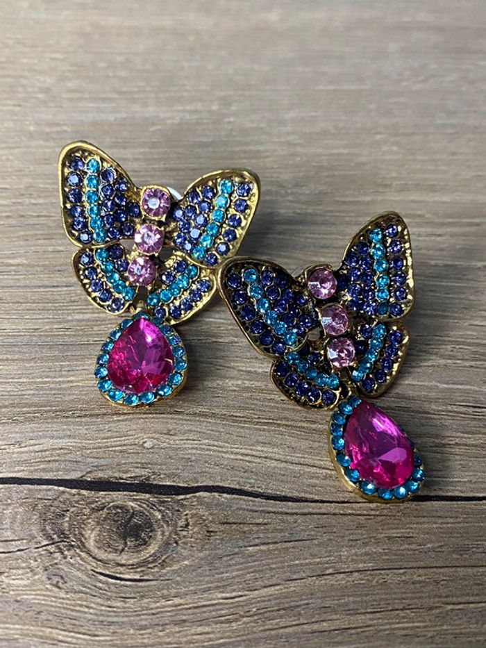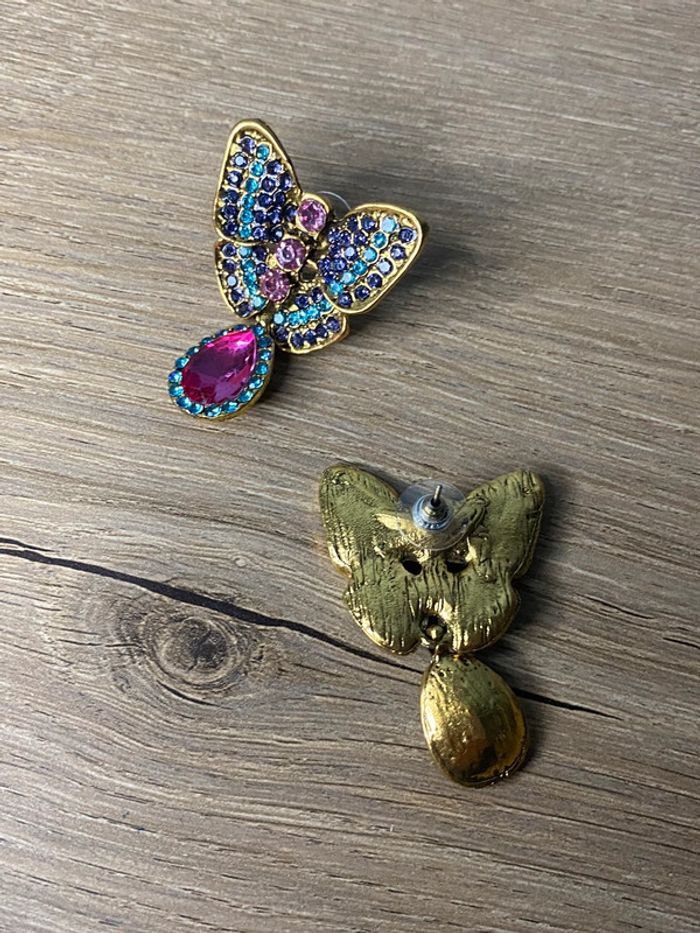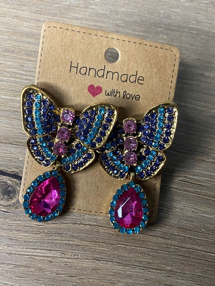Paire de boucles d’oreille acier papillon strass Légère tendance et fun Clou acier inoxydable Vendu dans son petit sac organza Envoi rapide et soigné