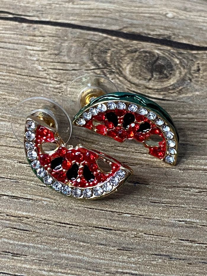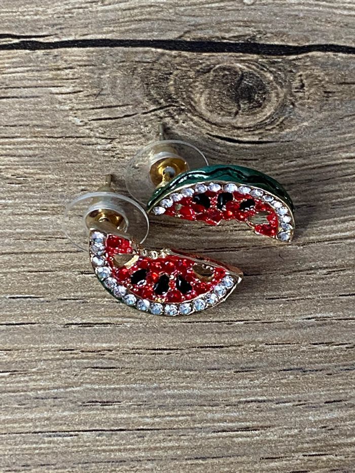 Paire de boucles d’oreille pastèque Légère tendance et fun Clou acier inoxydable Vendu dans son petit sac organza Envoi rapide et soigné