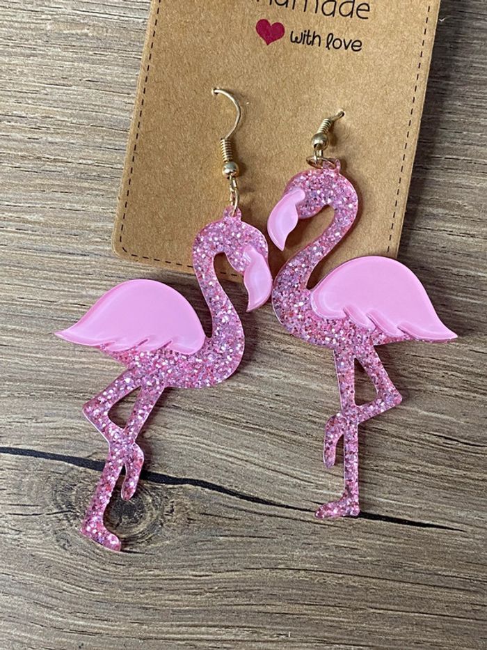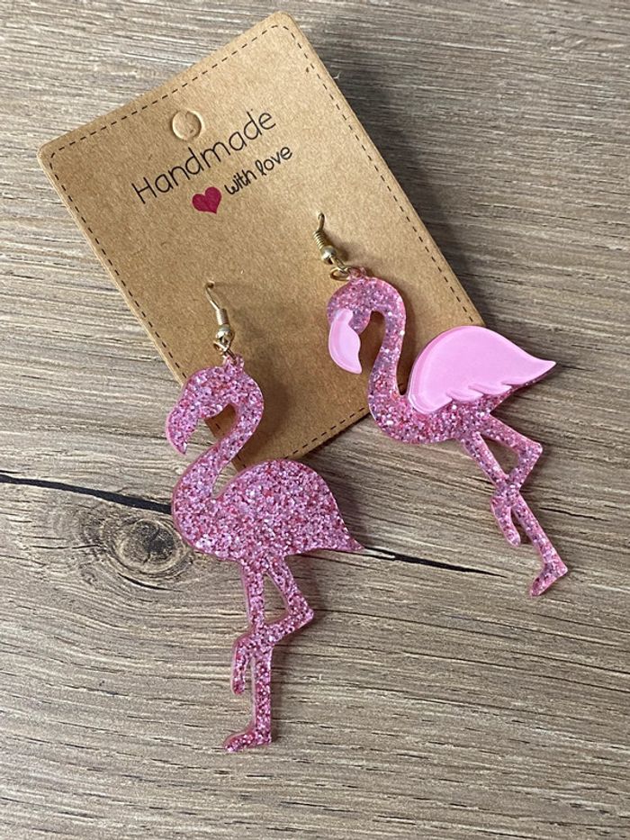 Boucles d oreilles flamands rose acrylique - photo numéro 2
