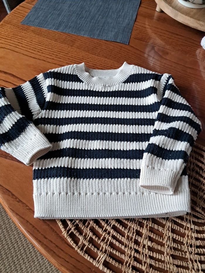 Pull mi-saison de la marque C&A 4 ans bleu marine et crème