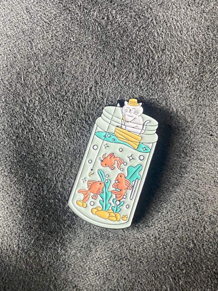 Pin's chat pêcheur En acier inoxydable dimensions visible sur la dernière photo Envoi rapide et soigné Livré dans sont petit sac organza