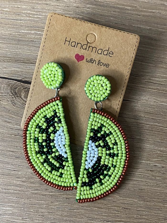 Paire de boucles d’oreille kiwi Légère tendance et fun Clou acier inoxydable Vendu dans son petit sac organza idéal pour un cadeau de noël originale Envoi rapide et soigné
