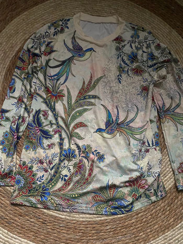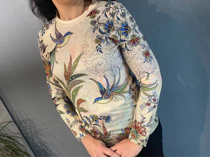 Maillot tendance oiseaux Longues manche Matière polyester Taille M Etat neuf