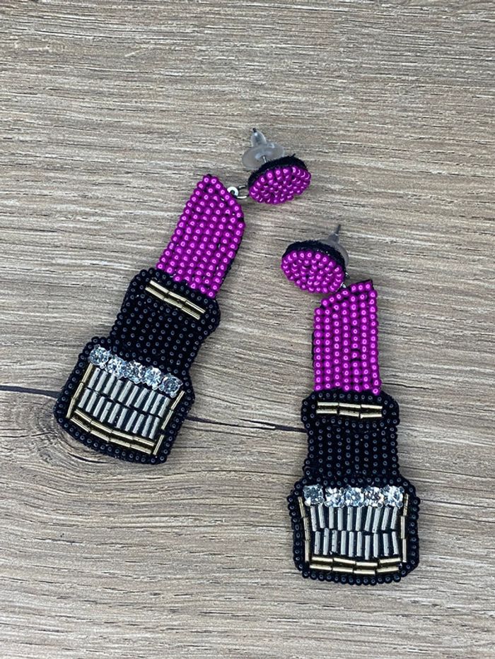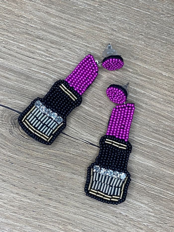 Paire de boucles d’oreille tissus perle rouge à lèvres