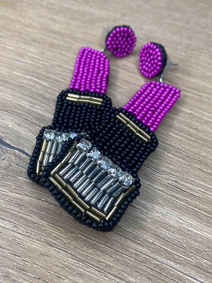 Boucles d’oreilles tissus perle Matière feutrine clou acier Envoi soigné Dimension visible sur les photos