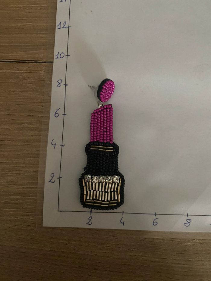 Paire de boucles d’oreille tissus perle rouge à lèvres - photo numéro 4
