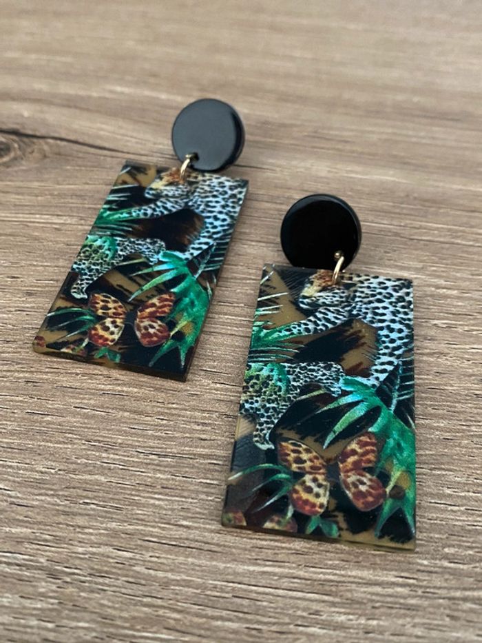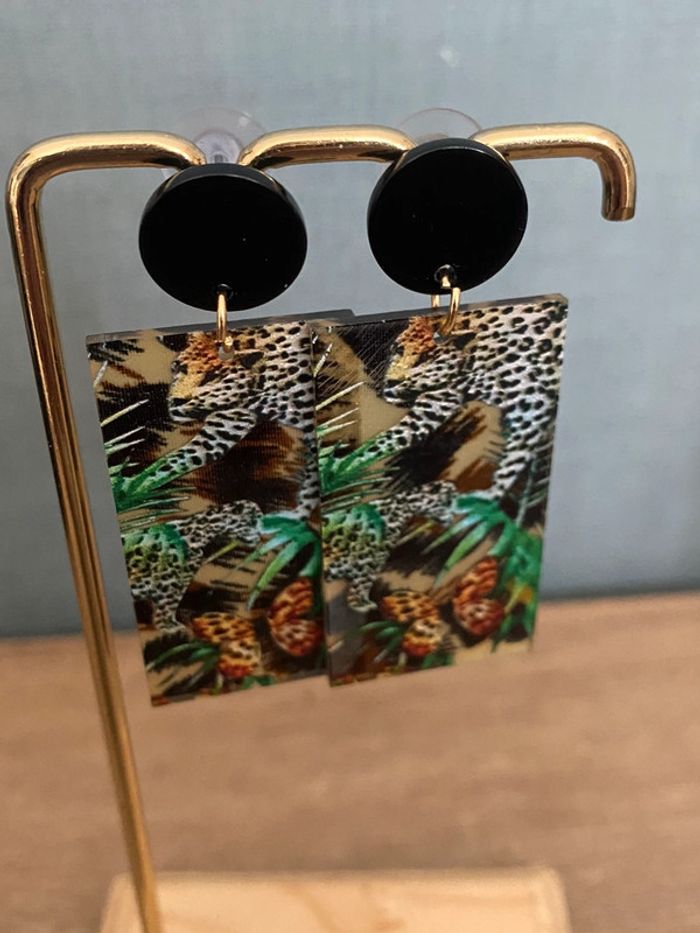 Paire de boucles d’oreille résine guépard - photo numéro 1