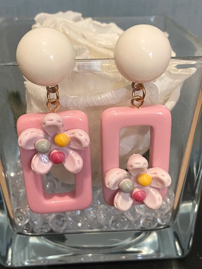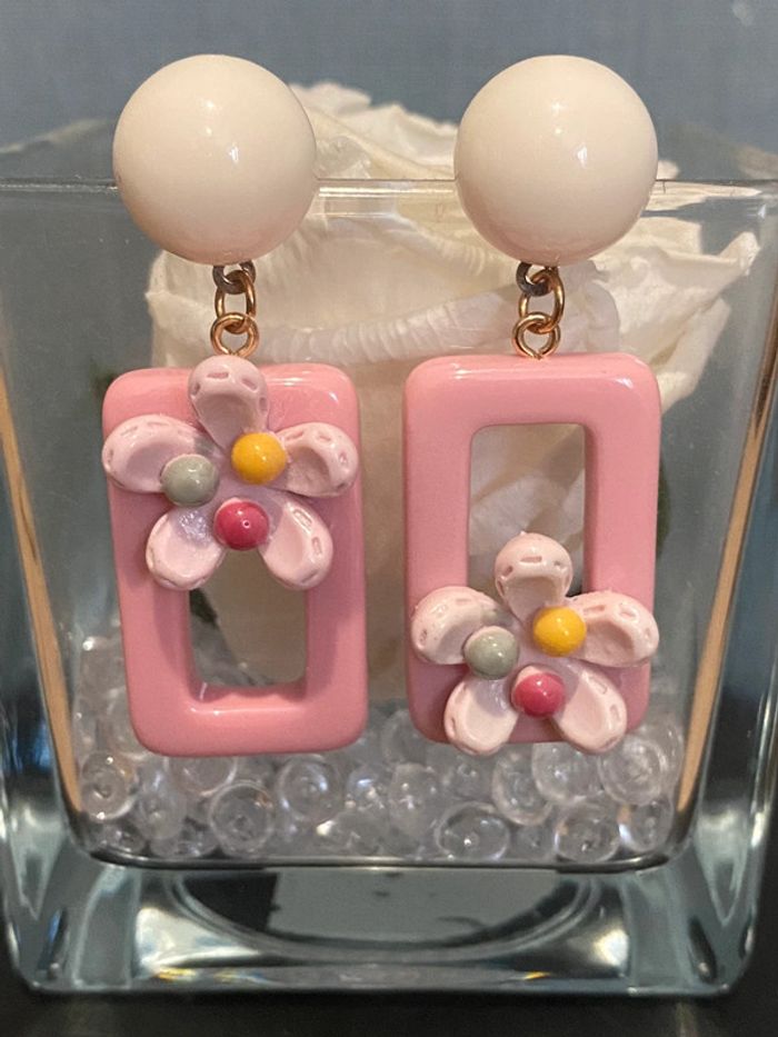 Paire de boucles d oreilles cadre fleurie - photo numéro 5