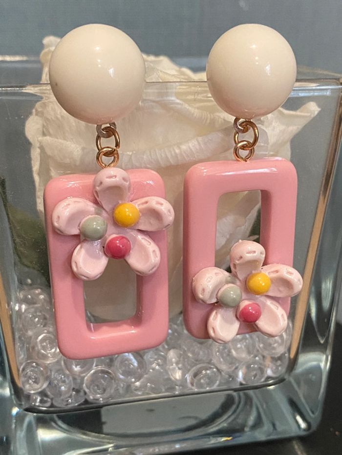 Paire de boucles d oreilles cadre fleurie - photo numéro 6