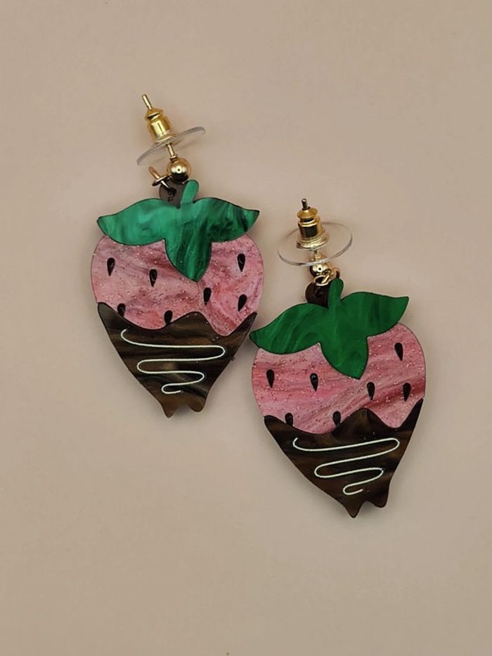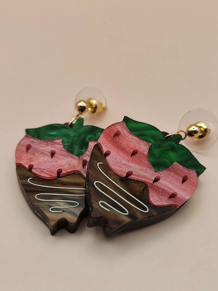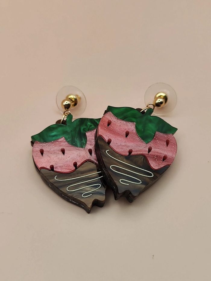 Paire de boucles d'oreilles fraises choco acryliques - photo numéro 1