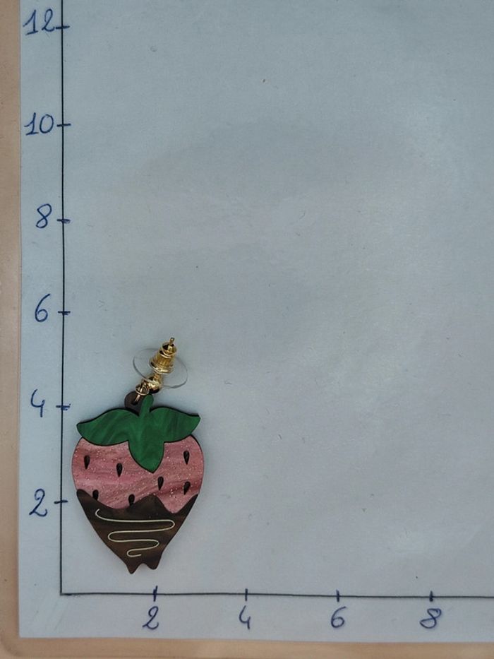 Paire de boucles d'oreilles fraises choco acryliques - photo numéro 5