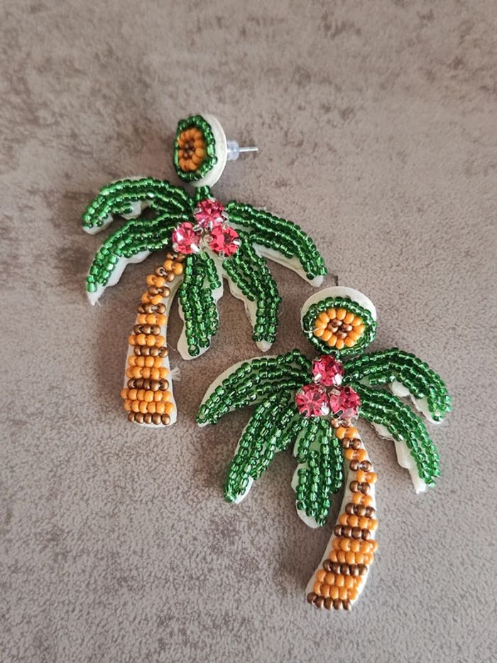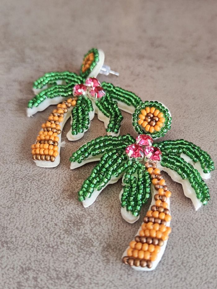 Paire de boucles d'oreilles feutrine perlé cocotiers - photo numéro 3