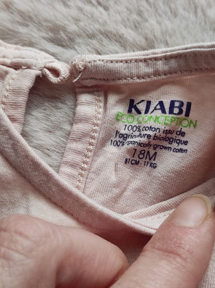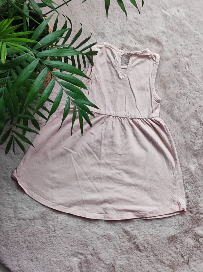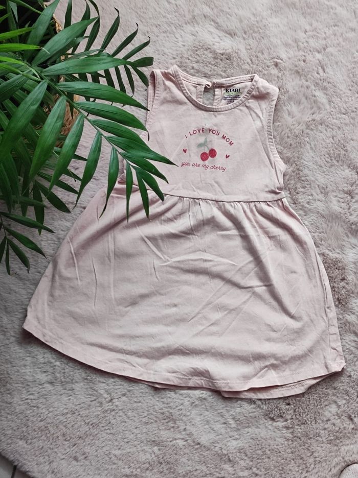 petite robe courte sans manches , légère en rose pâle. 100% coton issus de l'agriculture biologique. Inscription " i love you mom, you are my cherry ". Marque kiabi en 18mois.