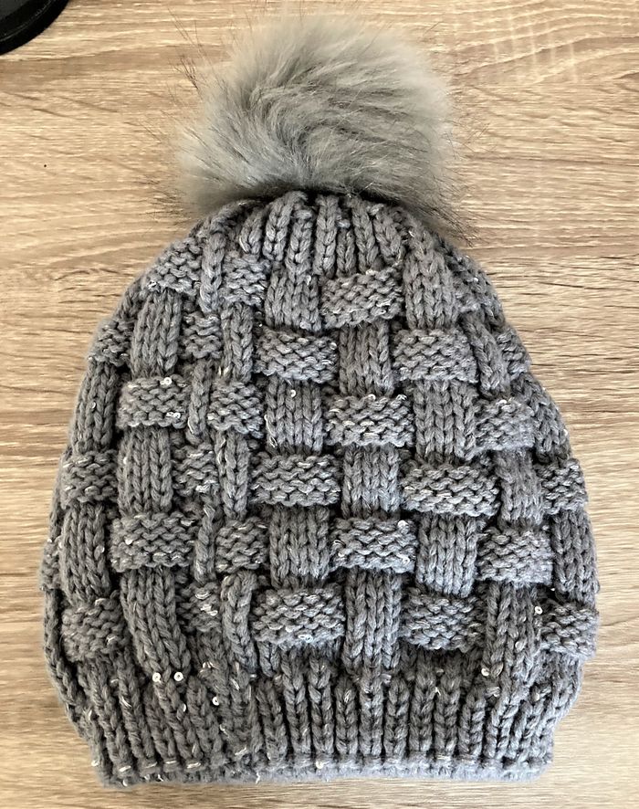 Bonnet laine et pompon gris/taupe taille unique - photo numéro 3