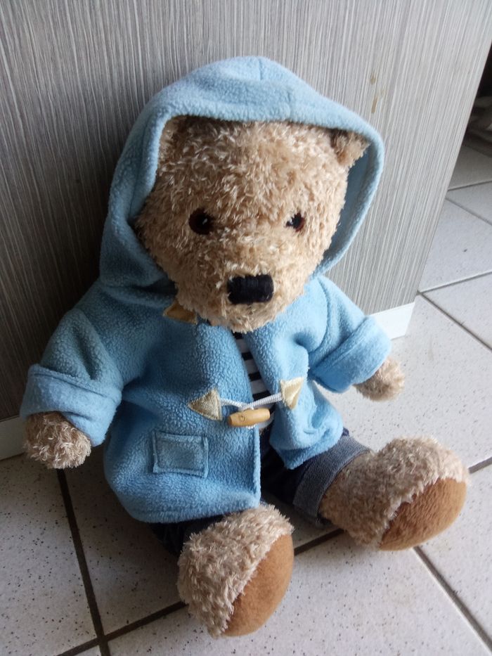 Très beau doudou ours habillé, étiquette présente. Bon état général
