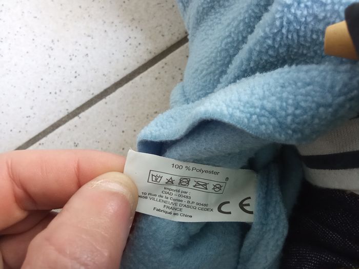Doudou, peluche  ours beige, bleu, habillé, jean, gilet, rayures - photo numéro 5