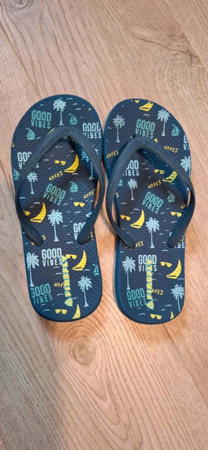 #loluxiagarconchaussures Marque Firefly d’Intersport Bleu avec motifs plages, palmiers, good vibes. Légèrement frottées sous le talon, ne gêne pas l’usage...