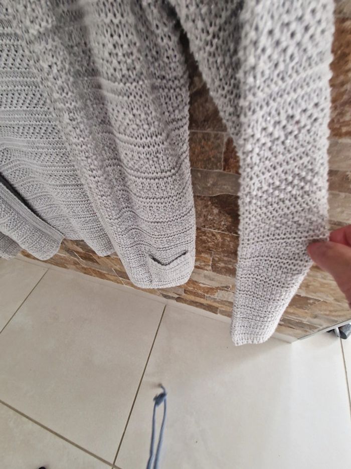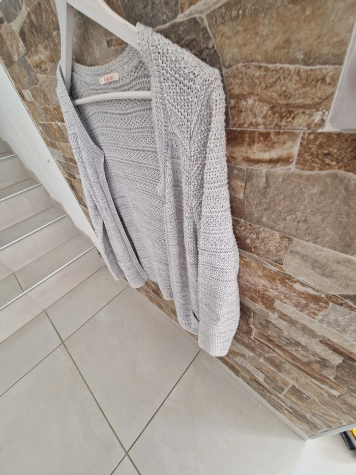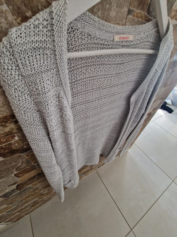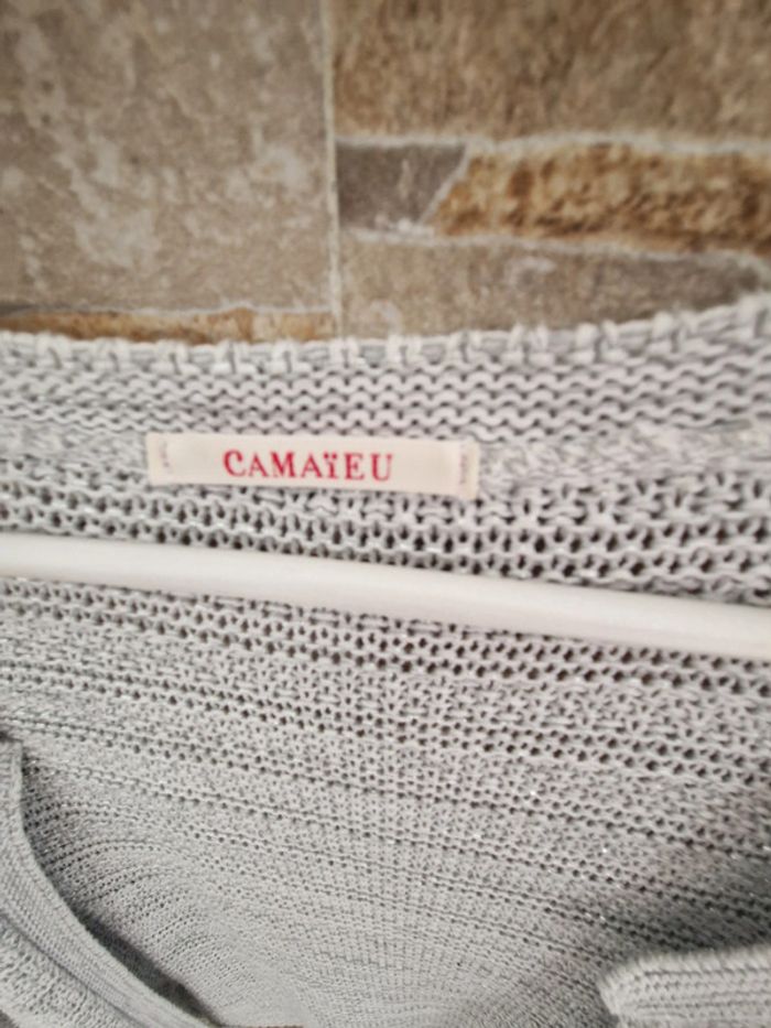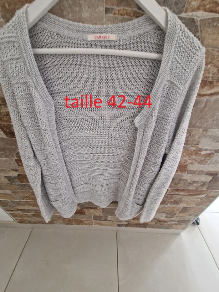 1 veste en maille taille 42-44 gris avec fils argenté marque camaieu