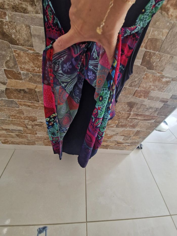 1 robe bleu motifs fleurs taille 44 marque Desigual robe doublé tissus et : 100% polyester doublure : 97% viscose 70 cm sous l'aisselle jusqu'en bas 47 cm de large aiselle a aisselle 96 cm env taille du haut jusqu'en bas #laetie69_femmesTAILLE44