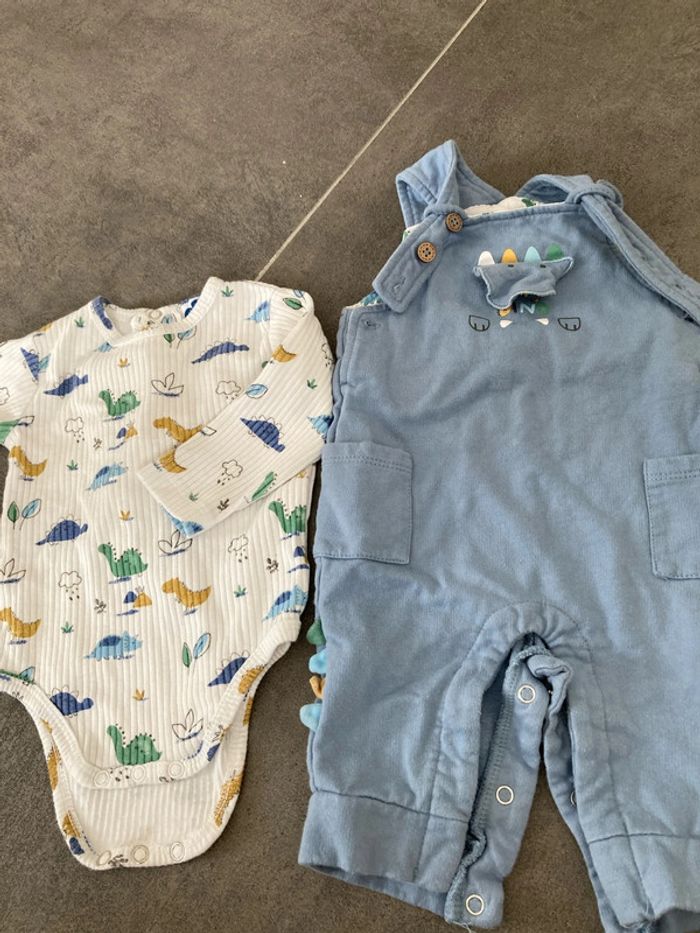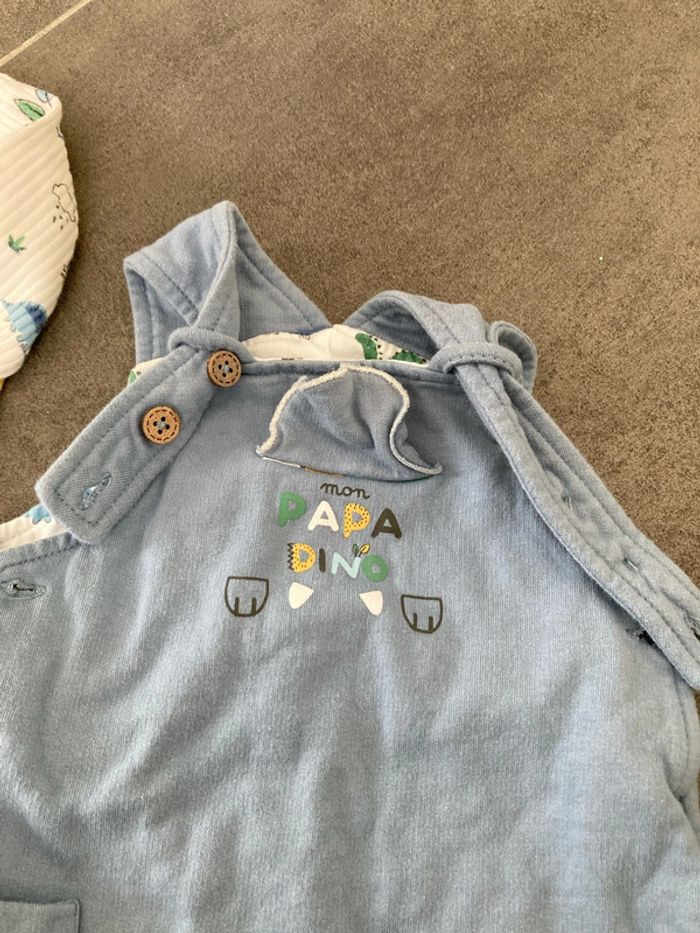 Ensemble salopette body dinosaures Mots d’enfants Pression et boutons Très bon état