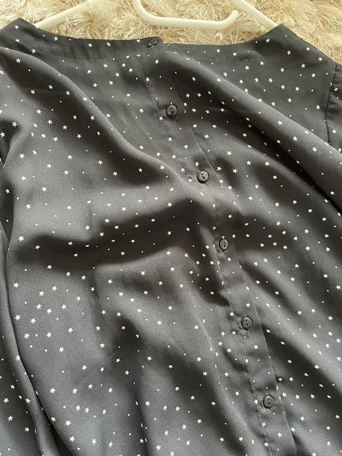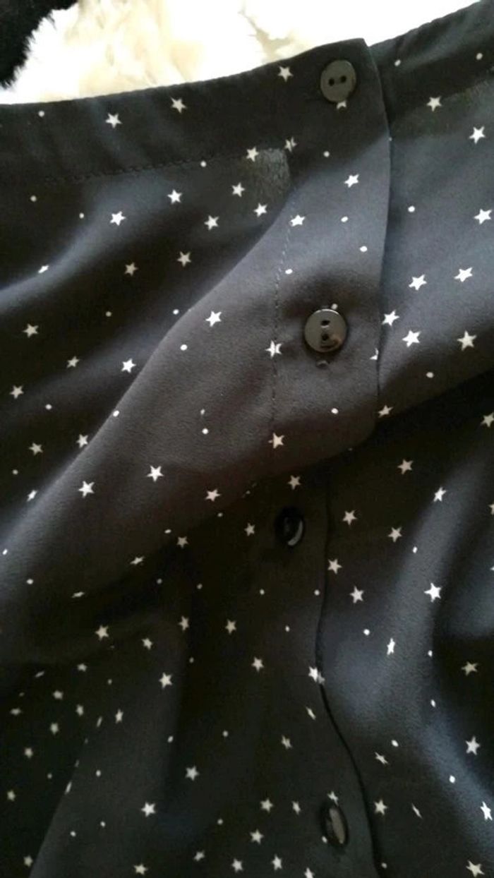 Blouse ✨ semi transparente, manches longues, nœuds au bout des manches, bouton dans le dos. Très facile à porter.