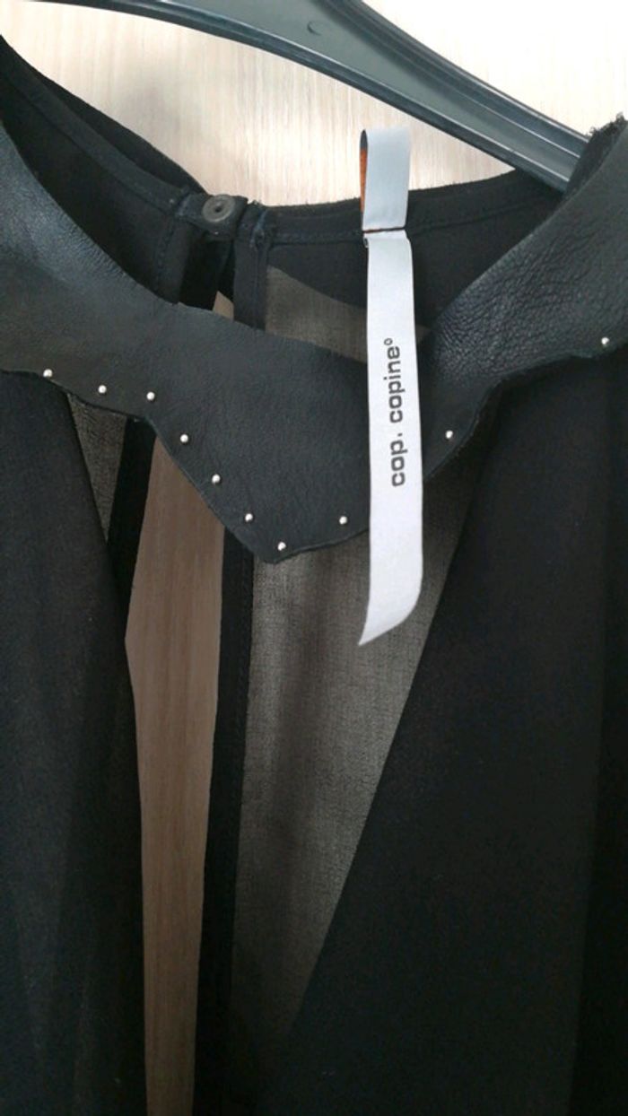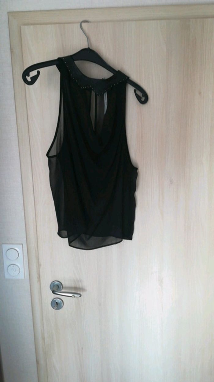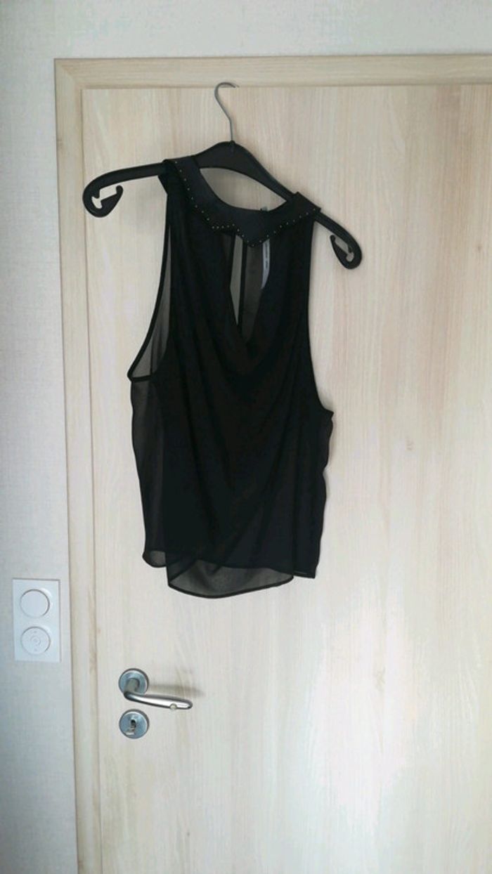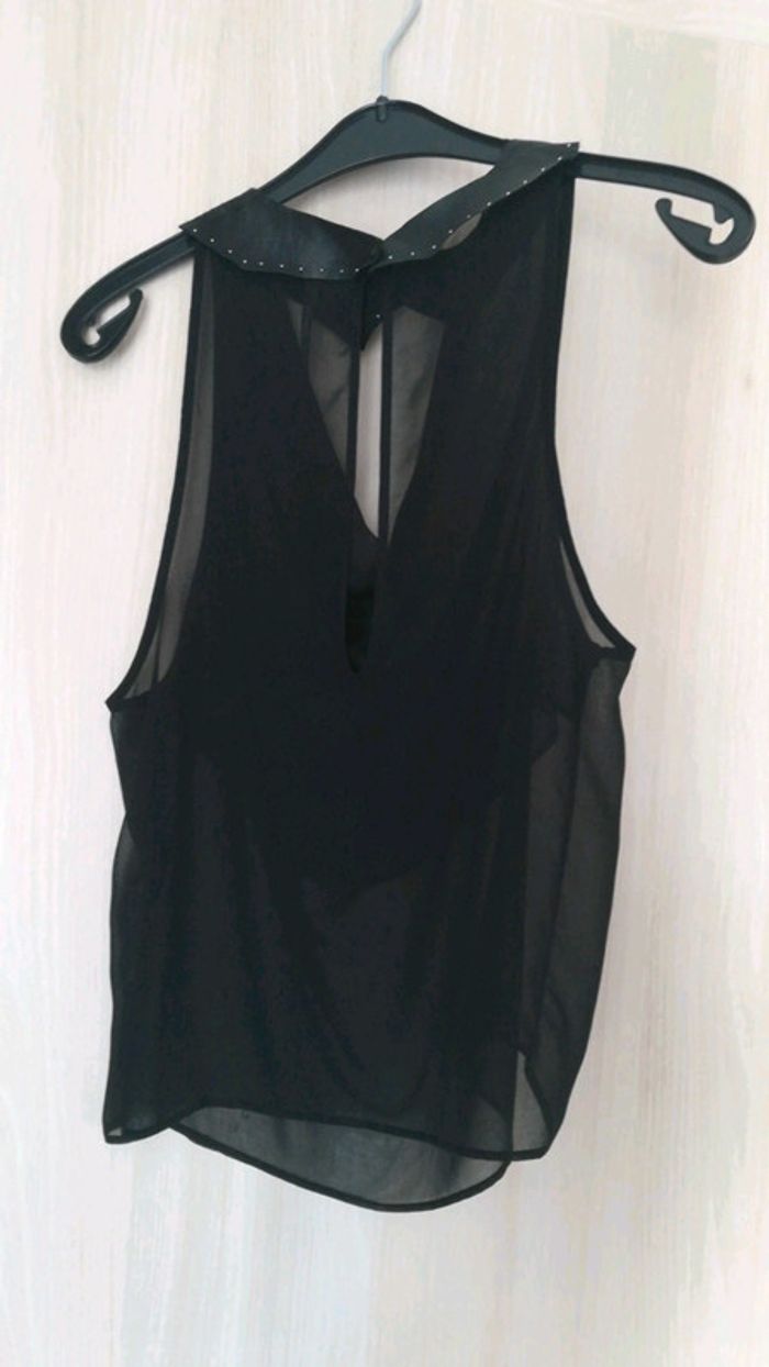 Top sans manches cop copine, col Claudine amovible, noir, transparent. Manche ample. Très fin. Étiquette coupée car visible mais taille 38