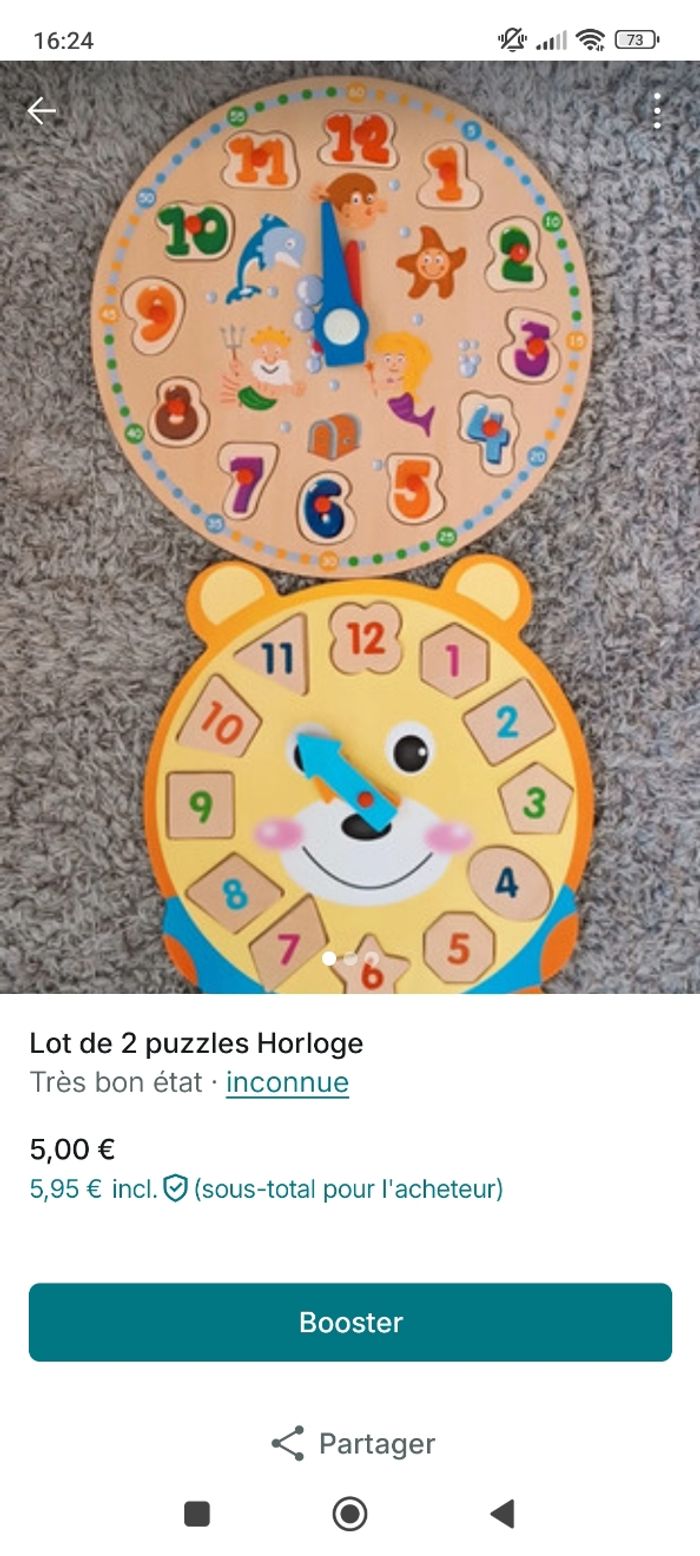 Lot de 2 puzzles Horloge Très bon état #clairefvetementsautres N'hésitez pas à me demander des 📷 photos. 👧naissance => 5 ans 👦naissance => 24 mois Matériel puériculture, jouets d'éveil ... 📦Envoi rapide et soigné