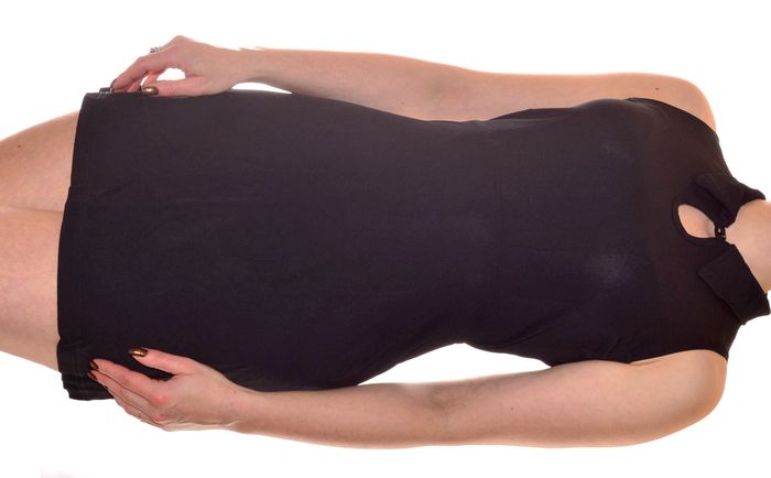 mini robe légère noire uni taille marquée taille S/M avec col, sans manches - photo numéro 4