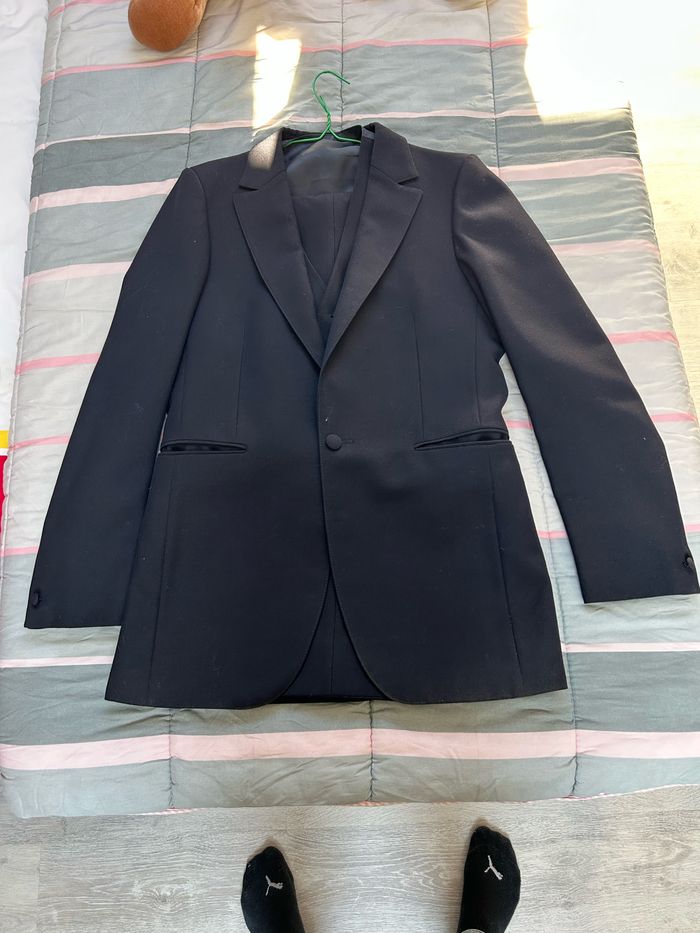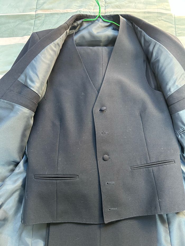 Costume 3 pièce bleu marine laine 60 polyester 40 très bon état
