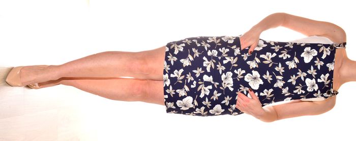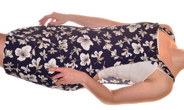 robe salopette courte bleu marine motif floral clair taille XS 100 % polyester aisselle à aisselle 42 cm au niveau de la taille 47 cm longueur 83 cm