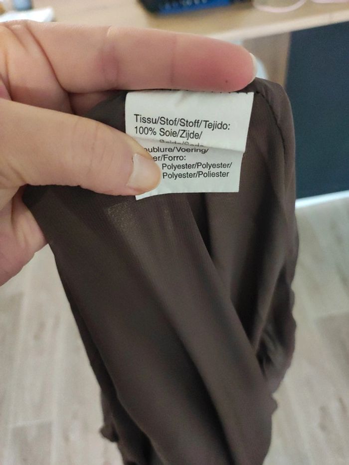 Bien lire ❗ Mise une seule fois pour un mariage. Fermeture cassée. Magnifique robe payée 120€ mise une seule fois. 100,% soie. Marron bronze.
