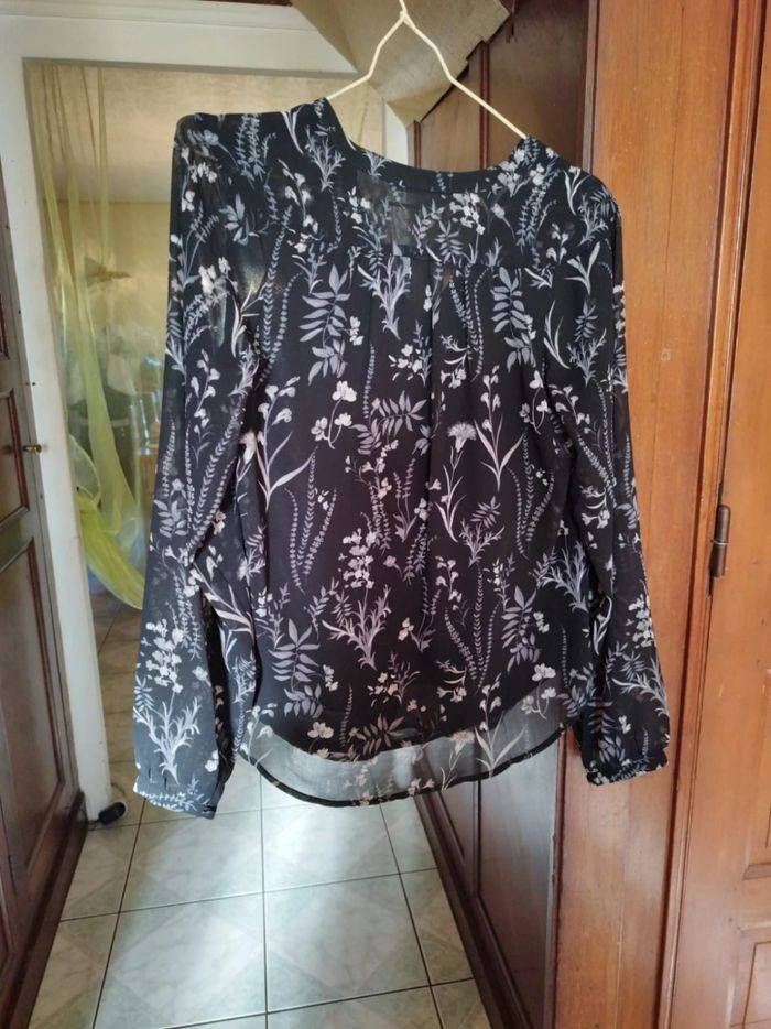 Chemisier noir et blanc fleuri Elora 36/38 - photo numéro 1