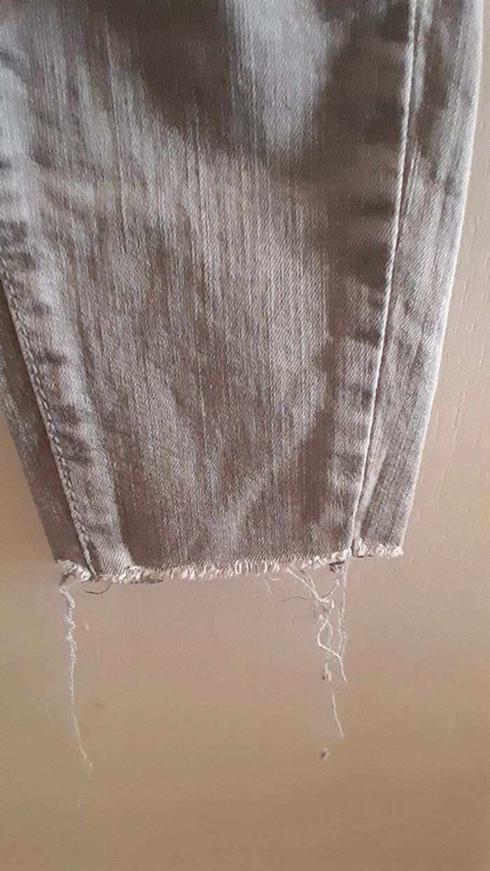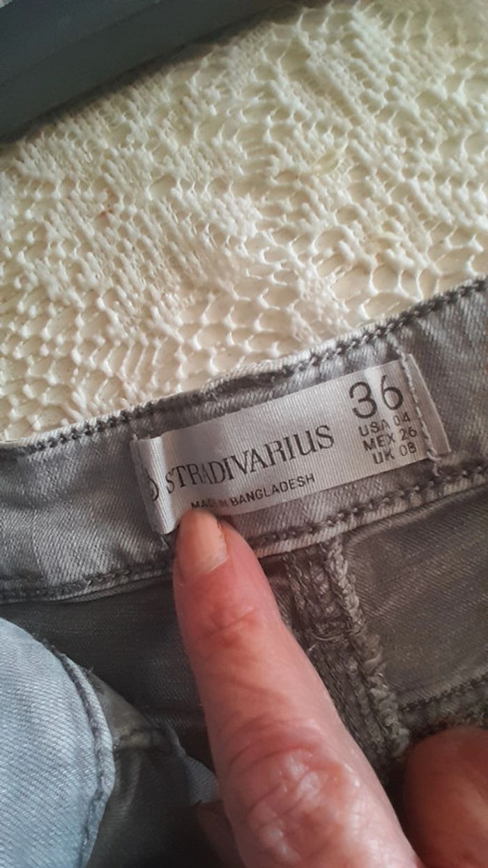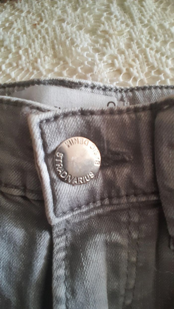 Jeans couleur gris, Taille 36, Marque Stradivarius elasthanne QUELQUES MESURES DU VETEMENT POSE A PLAT Largeur taille: 33cm hauteur totale : 98cm hauteur à partir de l'entrejambe :69cm largeur cuisses : 24,5cm largeur du bas : 11cm PAS DE TACHES OU DE DECOLORATION - C'EST MON APPAREIL PHOTOS QUI NE FONCTIONNE PAS BIEN !