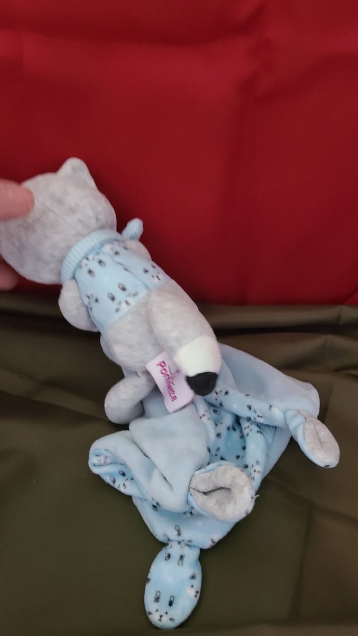 Pommette Doudou mouchoir Renard bleu gris lune étoile - photo numéro 4