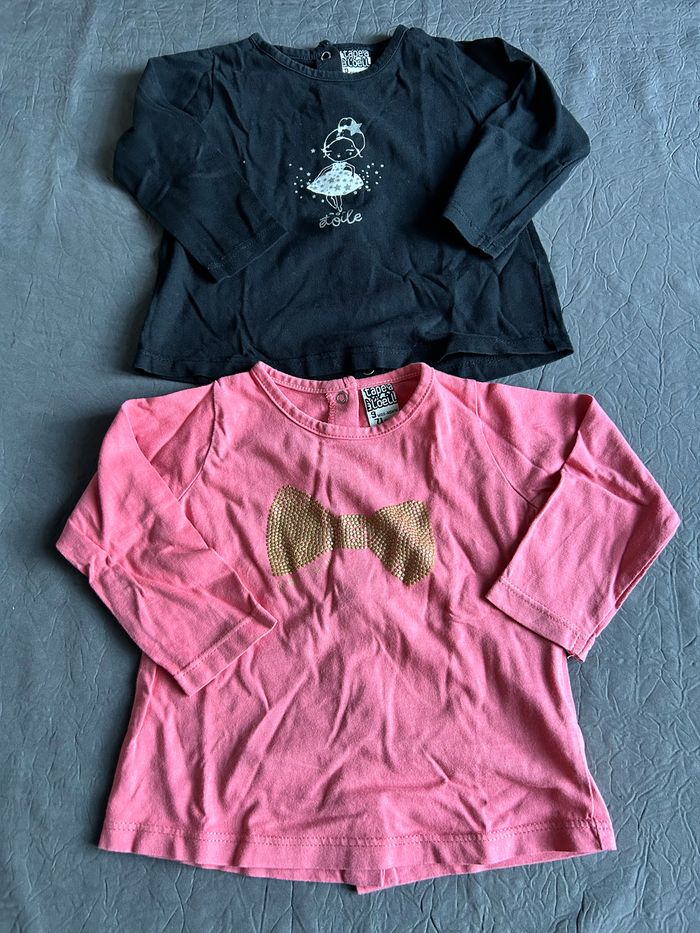Lot 2 t-shirts ML bébé fille 9 mois - photo numéro 1