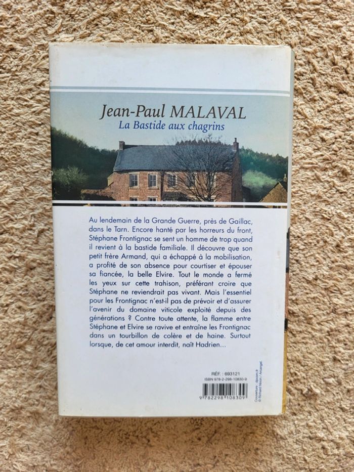 📚 Livre La Bastide aux Chagrins de Jean-Paul Malaval Paru en 2015 chez France Loisirs 📖 Couverture cartonnée et pages sans usure, les premières présentent une petite tâches dans le bas Jaquette un peu abîmée 📕 Dans la France rurale du XXe siècle, une bastide devient le témoin des joies et des drames d'une famille marquée par les secrets et les non-dits. Entre amour, ambitions et trahisons, ce roman immersif nous plonge dans un destin bouleversant où le passé ne cesse de resurgir. Une lecture émouvante et captivante pour les amateurs de sagas familiales riches en émotions.