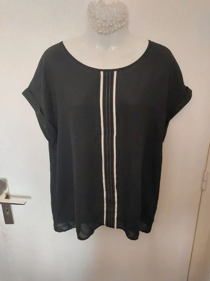 Magnifique Tee-shirt légé noir avec rayures taille 46 - photo numéro 2