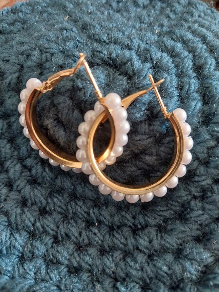 Boucles d'oreilles anneaux doré avec des perles
