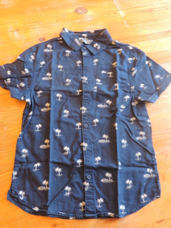 Chemine a manches courtes marine avec de palmiers en motif taille 8-9 ans - photo numéro 1