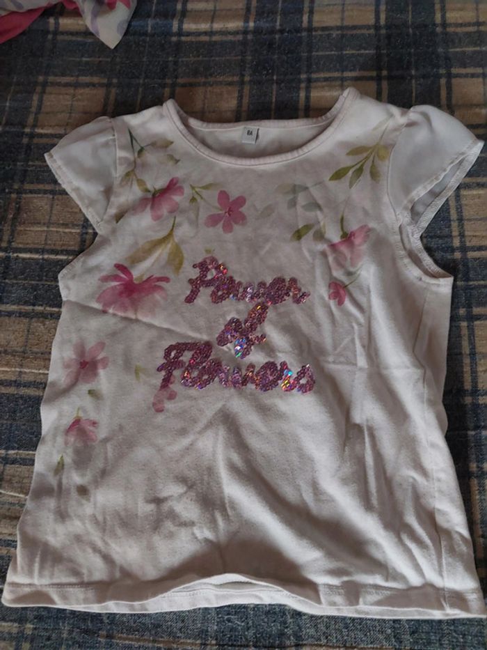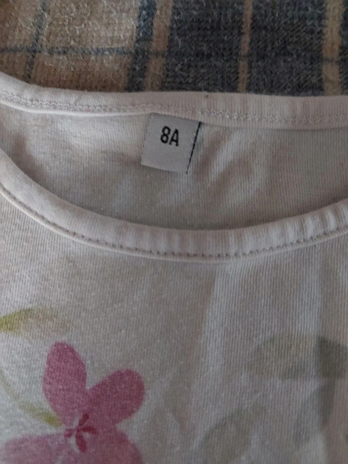 Tee-shirt blanc avec motif fleurs et écriture taille 8 ans
