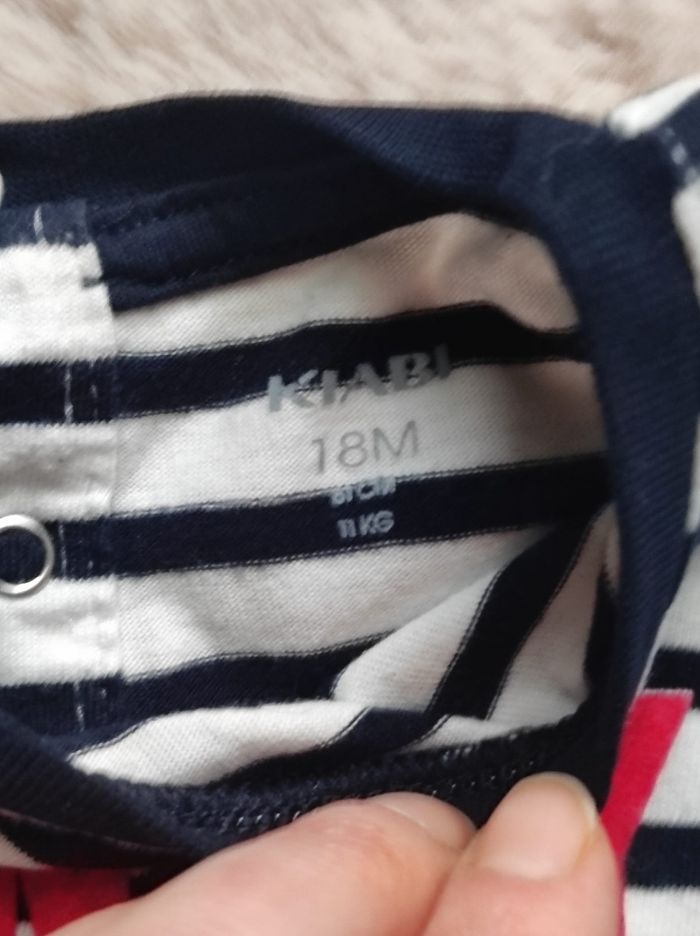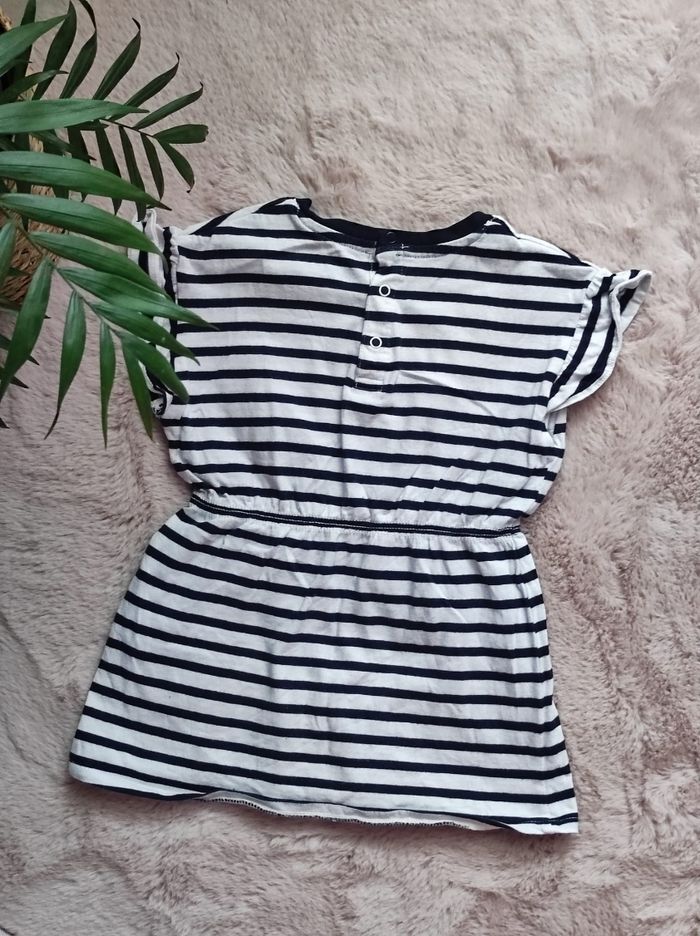 petite robe marinière " sunday club " à manches très courtes et élastique à la taille. Marque Kiabi en 18mois.