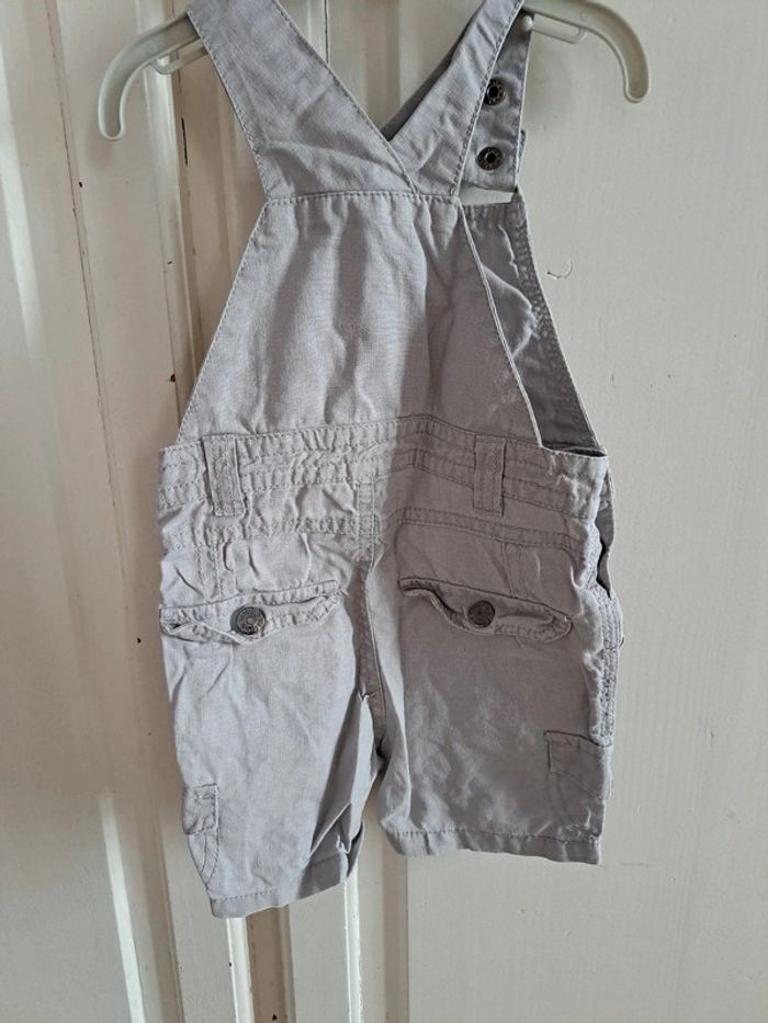 Salopette short grise en coton et lin 12 mois - photo numéro 3