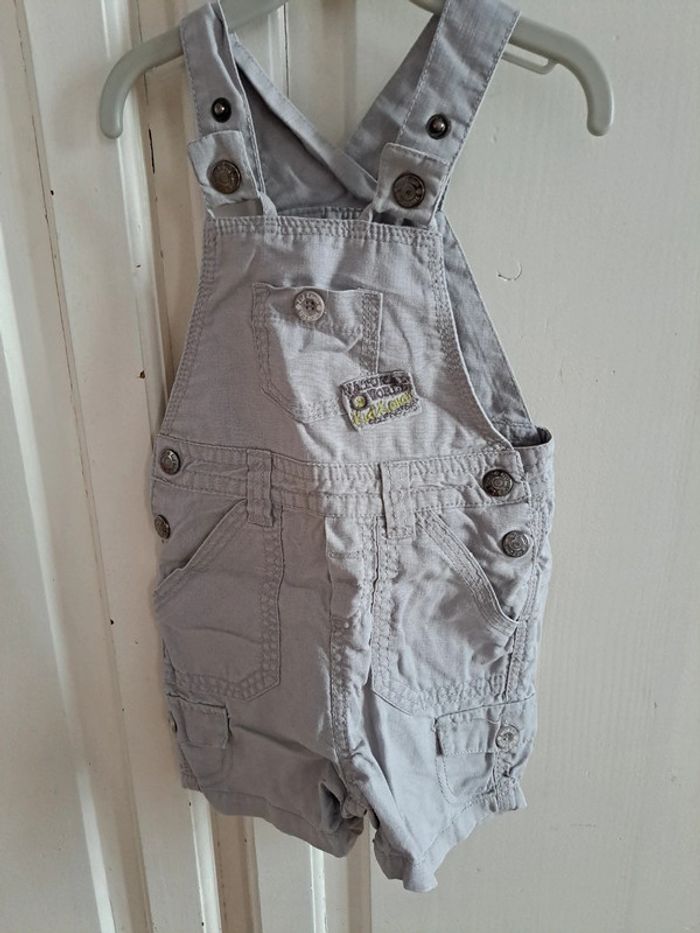 Salopette short grise en coton et lin 12 mois - photo numéro 1