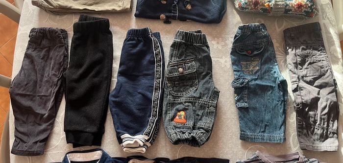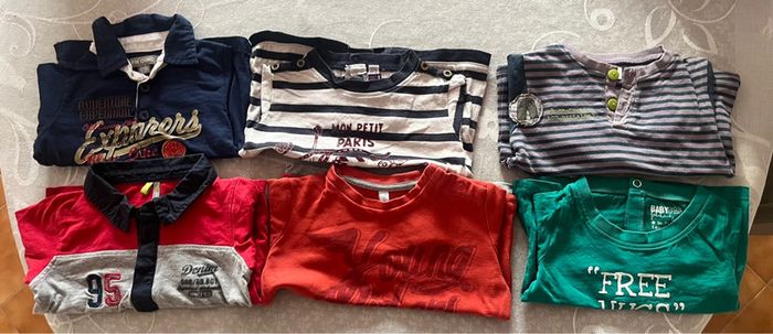 Lot comprenant: 6 tee shirts manches longues, dont 2 polos 7 pantalons 1 chemise manches courtes 4 gilets + 1 offert 1 gilet sans manches