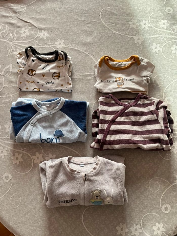 Deux bodies manches longues: orchestra Deux pyjamas hiver: 1 verbaudet Un sur pyjama Tout en très bon état Taille 9 mois