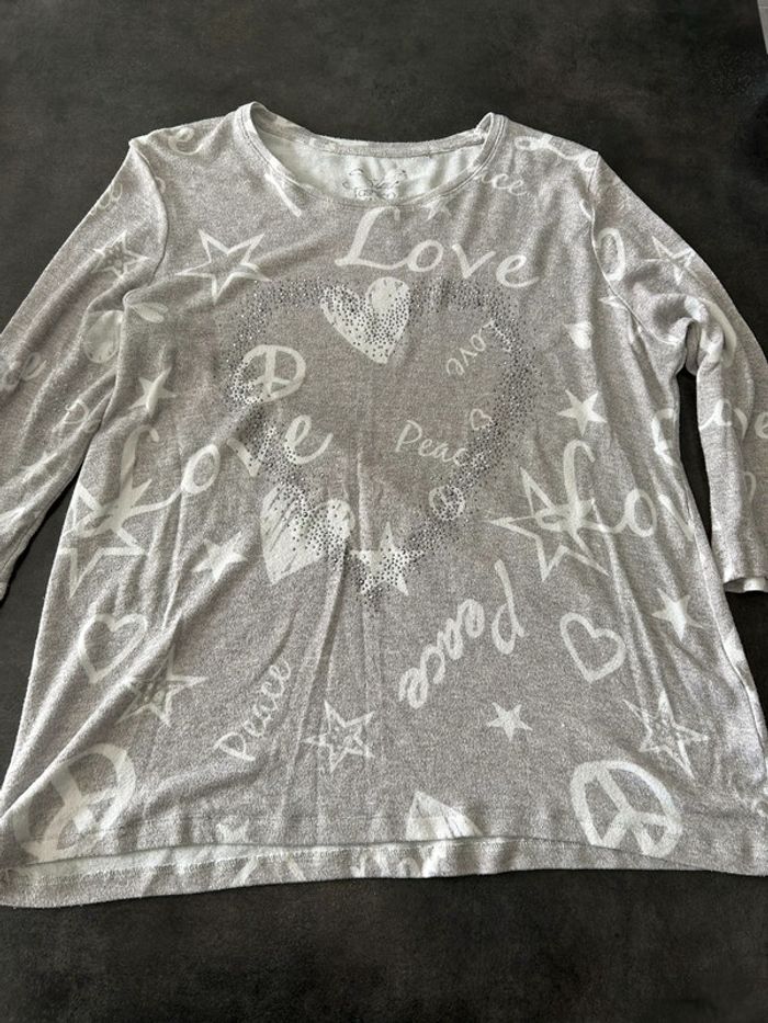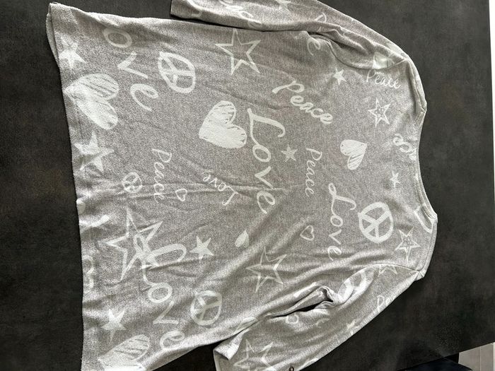 Gris et blanc Porté plusieurs fois Les manches se remontent Love Détail coeur en paillettes (stras)