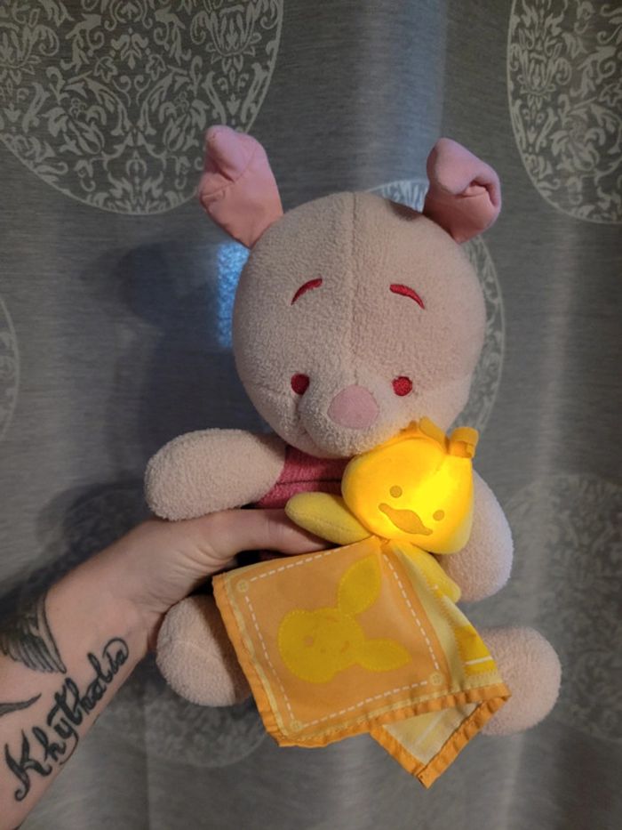 Peluche porcinet avec doudou canard lumière et son Fischer price