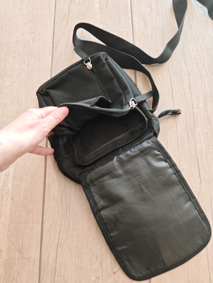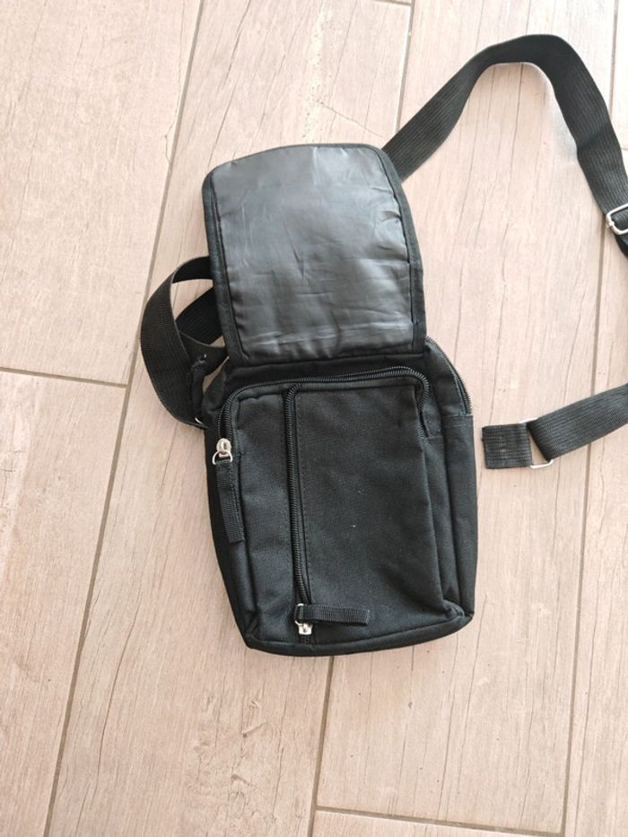 Pochette en bandoulière homme, plusieurs poches de rangement avec fermeture éclair ⚠️ La lanière est décousue d'un côté
