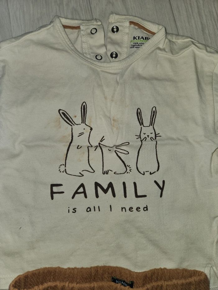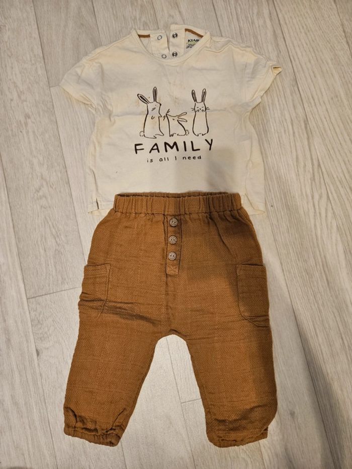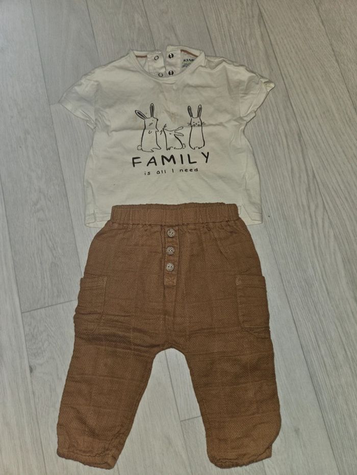 Ensemble bébé: pantalon en très bon état et t-shirt état satisfaisant (tâches) Taille 12 mois