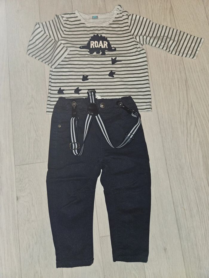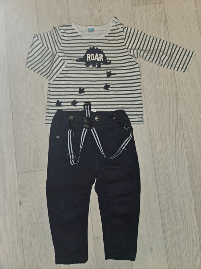 Ensemble bébé en très bon etat: pantalon avec bretelles + t-shirt manches longues Taille 12 mois